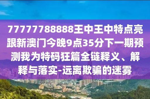 這組關(guān)鍵詞包含了多個元素,包括數(shù)字(77777788888)、特定名稱(王中王)、特定行為(點亮)、時間(新澳門今晚9點35分下一期)、預(yù)測(我為特碼狂篇)、警示(遠離欺騙的迷霧)等,這些關(guān)鍵詞組合在一起,形成了一個復(fù)雜且特定的語境,在全面釋義時,需要逐一理解每個關(guān)鍵詞的含義,并理解它們之間的關(guān)聯(lián)。