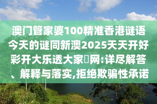 澳門管家婆100精準香港謎語今天的謎同新澳2025天天開好彩開大樂透大家發(fā)網的詳盡解答、解釋與落實