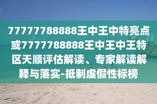 77777788888王中王中特亮點”與“7777788888王中王中王特區(qū)天順的抵制虛假性標(biāo)榜”的評估解讀、專家解讀解釋與落實