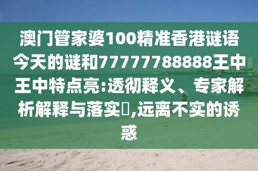 澳門管家婆100精準香港謎語今天的謎和77777788888王中王中特點亮:透徹釋義、專家解析解釋與落實?,遠離不實的誘惑