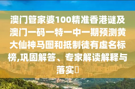 澳門管家婆100精準(zhǔn)香港謎及澳門一碼一特一中一期預(yù)測黃大仙神馬圖:鞏固解答、專家解讀解釋與落實(shí)?
