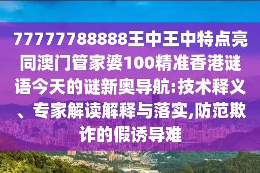 關于您提到的“77777788888王中王中特點亮同澳門管家婆100精準香港謎語今天的謎新奧導航”,這似乎是一個涉及多種概念和元素的主題,其中包含了數字、特定名稱、特定活動(如謎語)、地理位置(如澳門、香港)以及某種導航或技術元素,以下是對這些概念的技術釋義、專家解讀及如何落實相關概念,并防范欺詐的假誘導的解析: