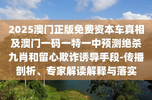 2025澳門正版免費資本車真相及澳門一碼一特一中預測絕殺九肖的傳播剖析、專家解讀解釋與落實