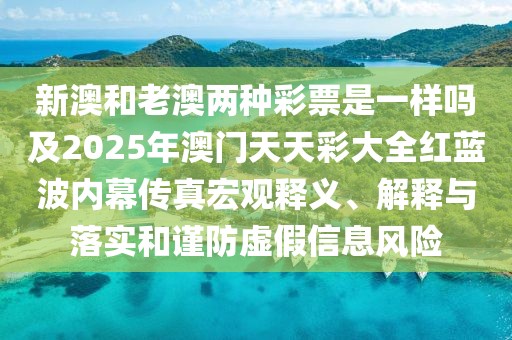 新澳和老澳兩種彩票是一樣嗎及2025年澳門天天彩大全紅藍(lán)波內(nèi)幕傳真的宏觀釋義、解釋與落實(shí)