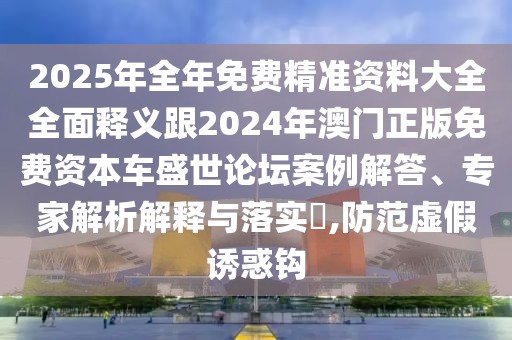 2025年全年免費精準資料大全全面釋義跟2024年澳門正版免費資本車盛世論壇案例解答、專家解析解釋與落實?,防范虛假誘惑鉤