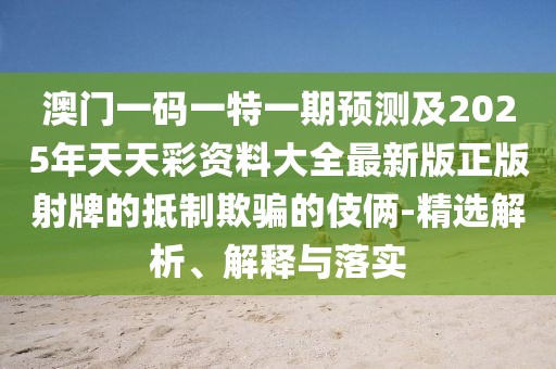 關(guān)于澳門(mén)一碼一特一期預(yù)測(cè)及2025年天天彩資料大全的最新正版射牌精選解析的解釋與落實(shí),抵制虛假宣傳的警告