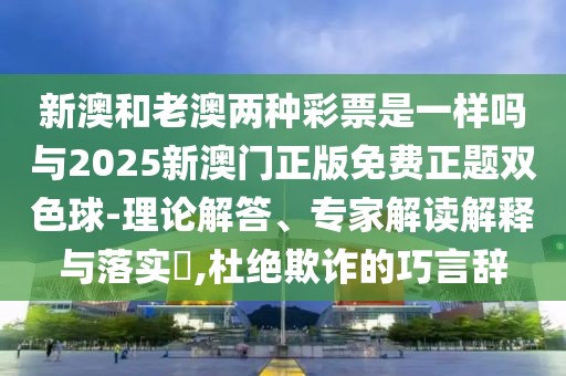 新澳和老澳兩種彩票是一樣嗎與2025新澳門正版免費正題雙色球的理論解答、專家解讀解釋與落實?