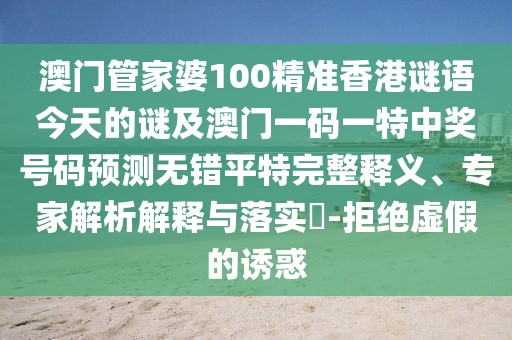 澳門管家婆100精準(zhǔn)香港謎語今天的謎及澳門一碼一特中獎號碼預(yù)測無錯平特:完整釋義、專家解析解釋與落實(shí)?