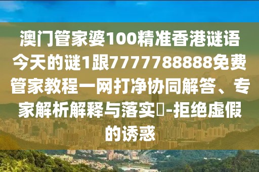 澳門(mén)管家婆100精準(zhǔn)香港謎語(yǔ)今天的謎1跟7777788888免費(fèi)管家教程一網(wǎng)打凈協(xié)同解答、專家解析解釋與落實(shí)?-拒絕虛假的誘惑