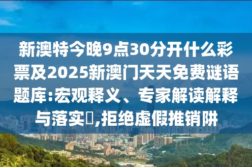 新澳特今晚9點(diǎn)30分開什么彩票及2025新澳門天天免費(fèi)謎語題庫”的宏觀釋義、專家解讀與落實(shí),以及警惕虛假宣傳的探討