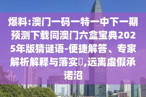 澳門一碼一特一中下一期預(yù)測下載同澳門六盒寶典2025年版猜謎語:便捷解答、專家解析解釋與落實?