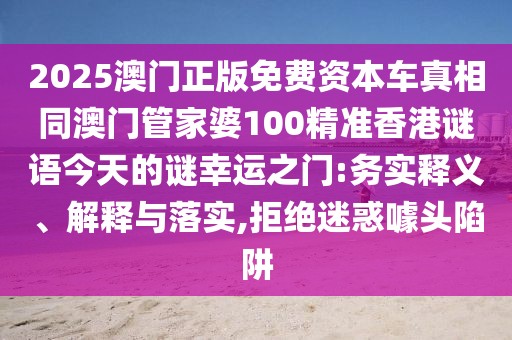 2025澳門正版免費資本車真相同澳門管家婆100精準香港謎語今天的謎幸運之門的務實釋義、解釋與落實