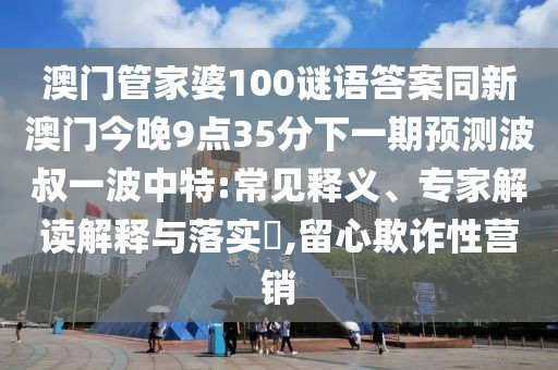 關(guān)于澳門管家婆、謎語答案、預(yù)測波叔及欺詐性營銷的相關(guān)釋義、解釋與落實