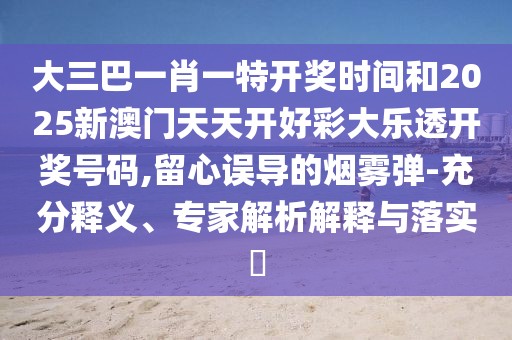 大三巴一肖一特開獎時間和2025新澳門天天開好彩大樂透開獎號碼,留心誤導的煙霧彈-充分釋義、專家解析解釋與落實?