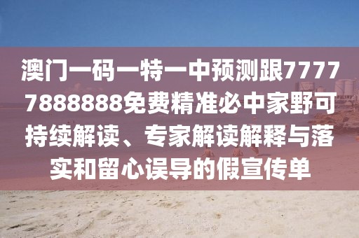 隨著科技的進(jìn)步和社會的發(fā)展,各種預(yù)測和彩票預(yù)測服務(wù)層出不窮,澳門一碼一特一中預(yù)測和77777888888免費(fèi)精準(zhǔn)必中家野等概念,在彩票市場中備受關(guān)注,這些概念往往伴隨著大量的誤解和誤導(dǎo)宣傳,本文將通過專家解讀,全面釋義與落實這些相關(guān)概念,幫助用戶認(rèn)清事實,避免受到誤導(dǎo)的假宣傳單的影響。