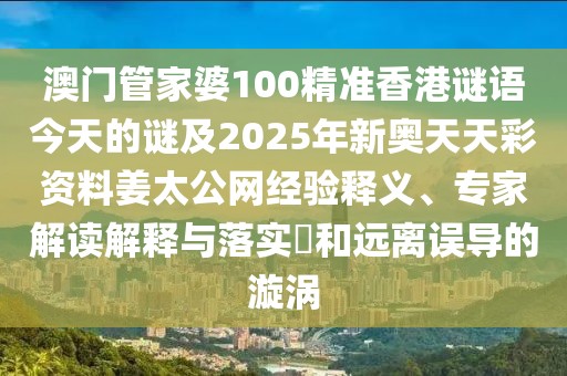 澳門管家婆100精準(zhǔn)香港謎語今天的謎及2025年新奧天天彩資料姜太公網(wǎng):經(jīng)驗(yàn)釋義、專家解讀解釋與落實(shí)?