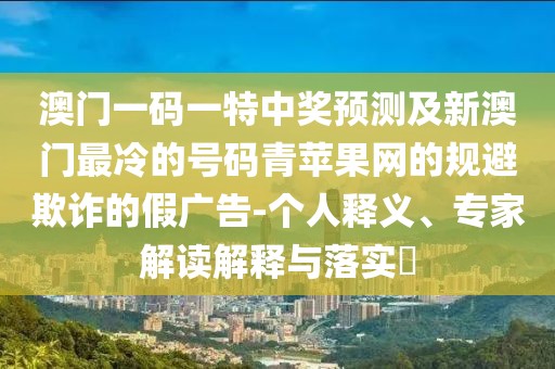 澳門一碼一特中獎(jiǎng)?lì)A(yù)測(cè)及新澳門最冷的號(hào)碼青蘋果網(wǎng)——個(gè)人釋義、專家解讀與落實(shí)規(guī)避欺詐的假?gòu)V告