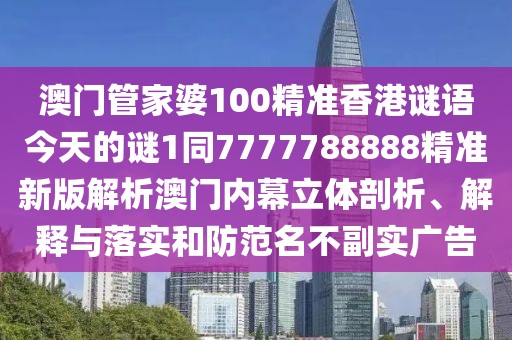 關(guān)于澳門管家婆100精準(zhǔn)香港謎語今天的謎1同7777788888精準(zhǔn)新版解析澳門內(nèi)幕的概念,涉及多個方面,包括立體剖析、解釋與落實,以及如何防范名不副實廣告等,以下是對此概念的詳細(xì)解析: