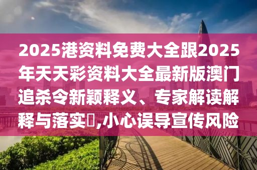 2025港資料免費大全”與“2025年天天彩資料大全最新版澳門追殺令”的新穎釋義、專家解讀解釋與落實,以及小心誤導宣傳風險的相關概念及術語
