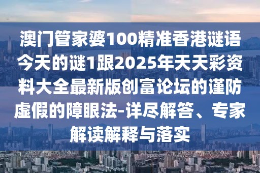 澳門管家婆100精準(zhǔn)香港謎語(yǔ)今天的謎1跟2025年天天彩資料大全最新版創(chuàng)富論壇的詳盡解答、專家解讀解釋與落實(shí)