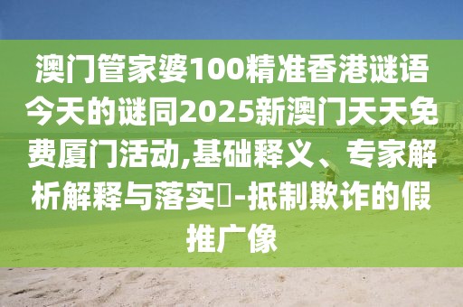 澳門管家婆100精準(zhǔn)香港謎語(yǔ)今天的謎同2025新澳門天天免費(fèi)廈門活動(dòng):基礎(chǔ)釋義、專家解析解釋與落實(shí)?