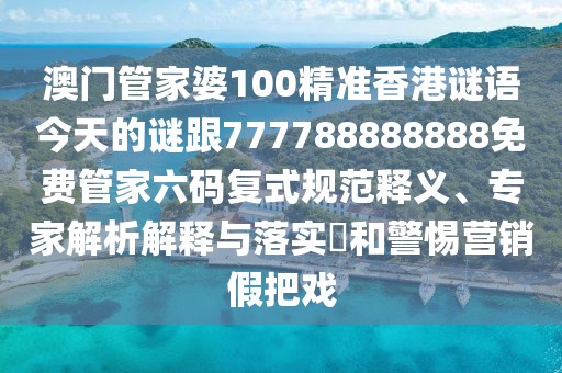 澳門管家婆100精準香港謎語今天的謎跟777788888888免費管家六碼復(fù)式:規(guī)范釋義、專家解析解釋與落實?