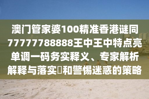 澳門管家婆100精準香港謎同77777788888王中王中特點亮單調一碼的務實釋義、專家解析解釋與落實?