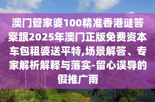 澳門(mén)管家婆100精準(zhǔn)香港謎答案跟2025年澳門(mén)正版免費(fèi)資本車(chē)包租婆送平特:場(chǎng)景解答、專家解析解釋與落實(shí)