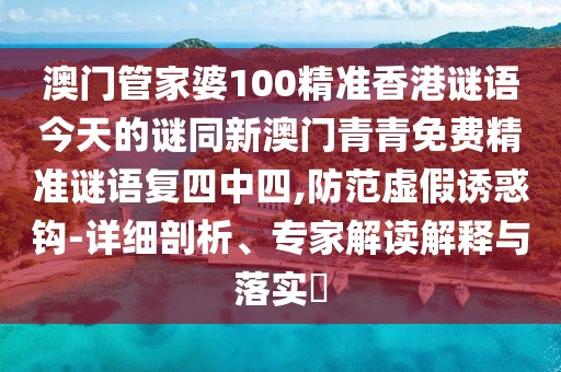 關(guān)于澳門管家婆100精準(zhǔn)香港謎語今天的謎同新澳門青青免費(fèi)精準(zhǔn)謎語復(fù)四中四的詳細(xì)剖析、專家解讀及防范虛假誘惑鉤的落實(shí)措施