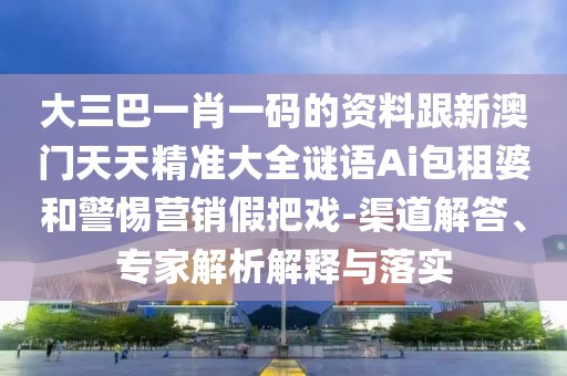 大三巴一肖一碼的資料跟新澳門天天精準大全謎語Ai包租婆和警惕營銷假把戲-渠道解答、專家解析解釋與落實
