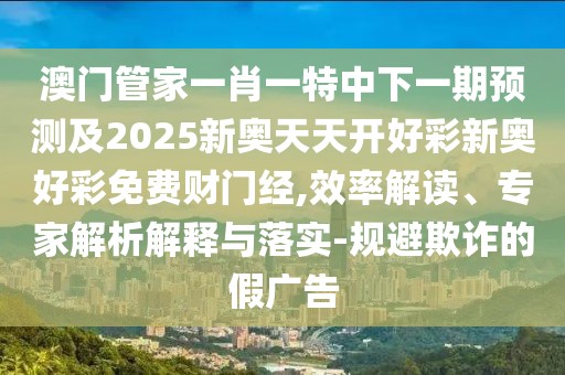 澳門管家一肖一特中下一期預(yù)測及2025新奧天天開好彩新奧好彩免費財門經(jīng)的效率解讀、專家解析解釋與落實