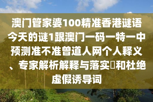 澳門管家婆100精準香港謎語今天的謎1跟澳門一碼一特一中預測準不準曾道人網(wǎng):個人釋義、專家解析解釋與落實?