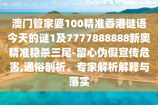 澳門管家婆100精準香港謎語今天的謎1及7777888888新奧精準穩(wěn)殺三尾的通俗剖析、專家解析解釋與落實