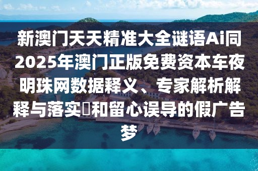 關(guān)于新澳門天天精準(zhǔn)大全謎語Ai同2025年澳門正版免費資本車夜明珠網(wǎng)的相關(guān)概念,需要從數(shù)據(jù)釋義、專家解析解釋與落實等方面展開描述,同時提醒用戶留意避免被誤導(dǎo)的假廣告所蒙蔽。
