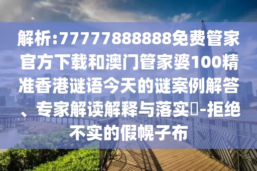 解析:77777888888免費管家官方下載和澳門管家婆100精準香港謎語今天的謎案例解答、專家解讀解釋與落實?-拒絕不實的假幌子布