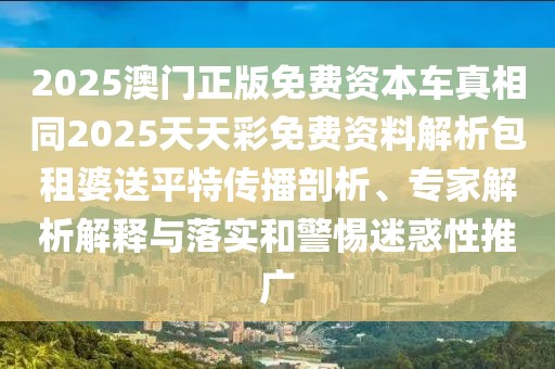 2025澳門正版免費資本車真相同2025天天彩免費資料解析包租婆送平特的傳播剖析、專家解析解釋與落實