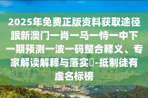 關(guān)于2025年免費(fèi)正版資料獲取途徑和新澳門(mén)一肖一馬一恃一中下一期預(yù)測(cè)一波一碼的概念,涉及到多個(gè)方面,包括網(wǎng)絡(luò)資源的獲取、預(yù)測(cè)的概念以及抵制徒有虛名標(biāo)榜的重要性,下面將從整合釋義、專(zhuān)家解讀解釋與落實(shí)相關(guān)概念及術(shù)語(yǔ)方面展開(kāi)詳細(xì)描述。