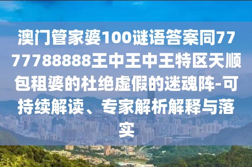 澳門管家婆100謎語答案同7777788888王中王中王特區(qū)天順包租婆的可持續(xù)解讀、專家解析解釋與落實