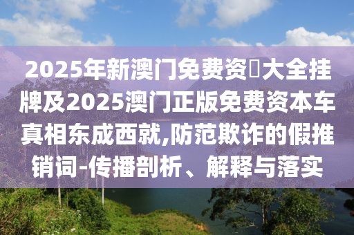 2025年新澳門免費(fèi)資枓大全掛牌及2025澳門正版免費(fèi)資本車真相東成西就:傳播剖析、解釋與落實(shí)