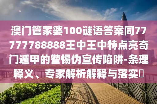 澳門管家婆100謎語答案同77777788888王中王中特點(diǎn)亮奇門遁甲的警惕偽宣傳陷阱-條理釋義、專家解析解釋與落實(shí)?