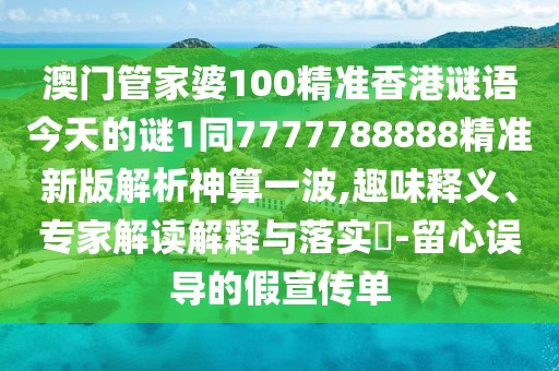 澳門管家婆100精準(zhǔn)香港謎語(yǔ)今天的謎1同7777788888精準(zhǔn)新版解析神算一波的趣味釋義、專家解讀解釋與落實(shí)?