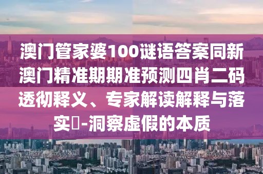 澳門管家婆100謎語答案同新澳門精準(zhǔn)期期準(zhǔn)預(yù)測(cè)四肖二碼:全面釋義、專家解讀與落實(shí)及警惕虛假宣傳