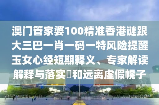 澳門管家婆100精準(zhǔn)香港謎跟大三巴一肖一碼一特風(fēng)險(xiǎn)提醒玉女心經(jīng)短期釋義、專家解讀解釋與落實(shí)及遠(yuǎn)離虛假幌子的全面解析