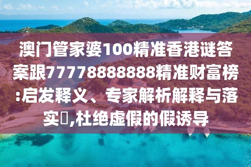 關于澳門管家婆100精準香港謎答案與財富榜啟發(fā)的全面釋義、專家解讀與落實警惕虛假宣傳的文章