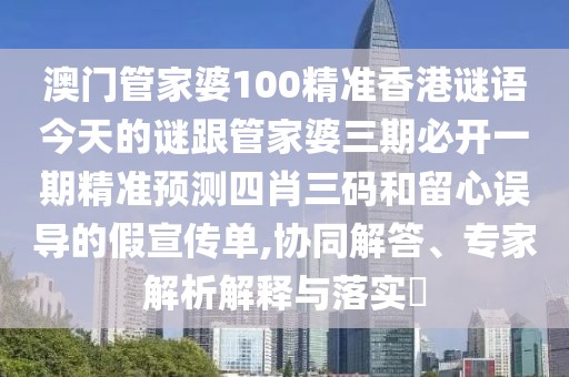 澳門管家婆100精準(zhǔn)香港謎語今天的謎跟管家婆三期必開一期精準(zhǔn)預(yù)測四肖三碼:協(xié)同解答、專家解析解釋與落實?