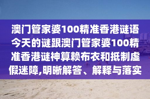 澳門管家婆100精準(zhǔn)香港謎語今天的謎跟澳門管家婆100精準(zhǔn)香港謎神算賴布衣:明晰解答、解釋與落實(shí)