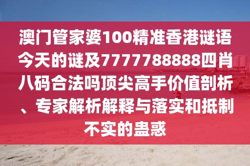澳門管家婆100精準(zhǔn)香港謎語今天的謎及7777788888四肖八碼合法嗎頂尖高手:價(jià)值剖析、專家解析解釋與落實(shí)
