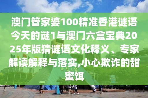 隨著社會的快速發(fā)展,網(wǎng)絡(luò)信息的普及,越來越多的人開始關(guān)注各種文化現(xiàn)象和娛樂形式,關(guān)于澳門管家婆的精準預測和香港謎語等話題備受關(guān)注,我們也要警惕其中可能存在的虛假宣傳和欺詐行為,本文將圍繞這些關(guān)鍵詞進行文化釋義、專家解讀,并強調(diào)公眾應警惕欺詐的甜蜜餌。