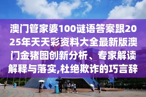 澳門管家婆100謎語答案跟2025年天天彩資料大全最新版澳門金豬圖創(chuàng)新分析、專家解讀解釋與落實,杜絕欺詐的巧言辭