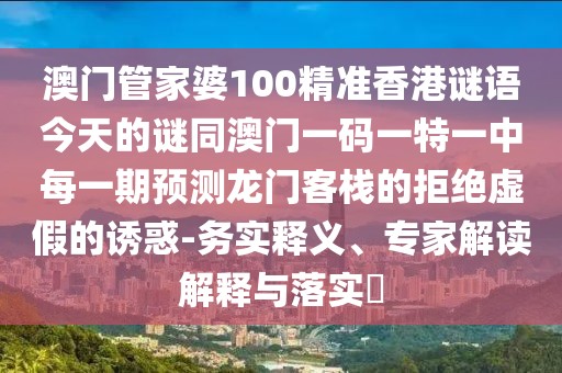 澳門管家婆100精準香港謎語今天的謎同澳門一碼一特一中每一期預(yù)測龍門客棧的拒絕虛假的誘惑-務(wù)實釋義、專家解讀解釋與落實?